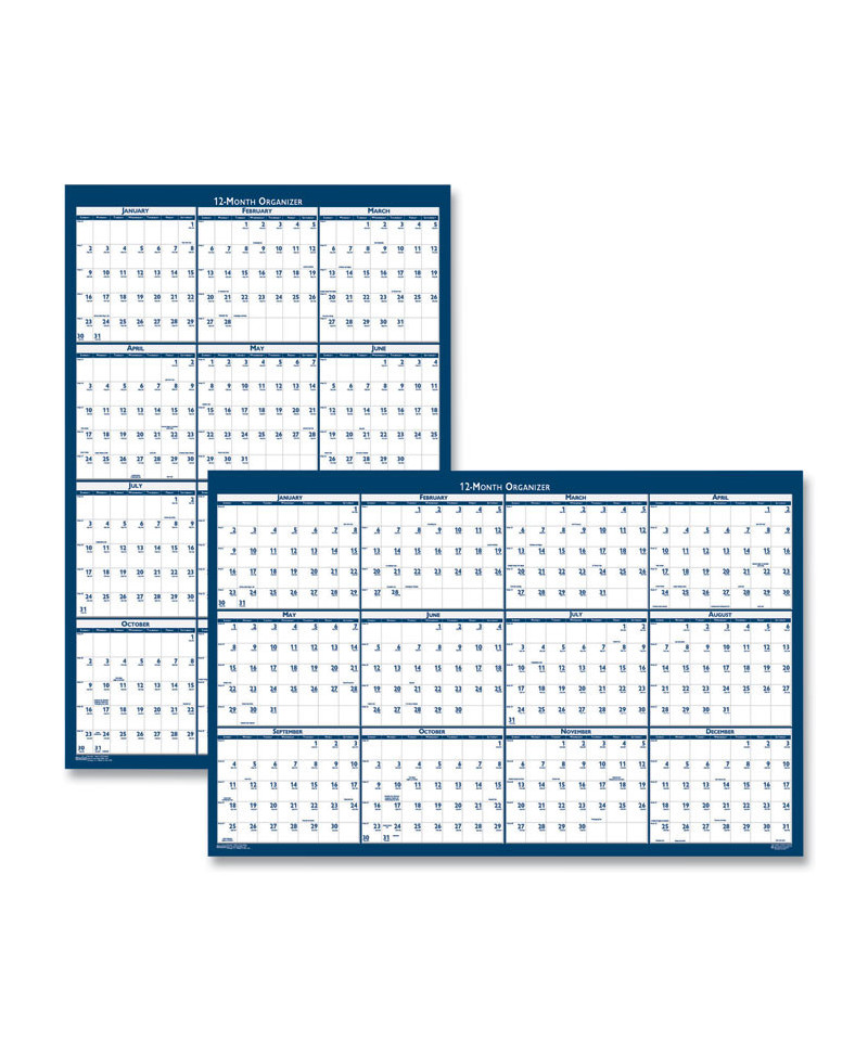 Heavy-laminated write-on/wipe-off surface easily erases with a damp cloth when your plans change. Extra-large daily squares provide ample writing space and can be seen from a distance. Horizontal format on one side, vertical format on reverse, to best fit your workspace. Includes one black, water-soluble marker and hangers. Calendar is made entirely of recycled materials.