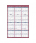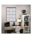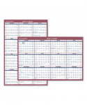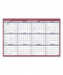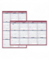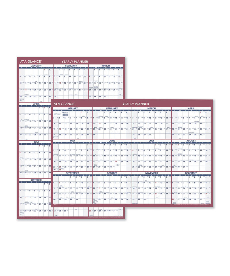 Reversible: horizontal or vertical annual view. Full-year calendar with open blocks featured on both sides. Federal holidays clearly marked in red. Border and print are red and blue with a bright white background. Printed on high-quality, recycled paper containing post-consumer recycled material.