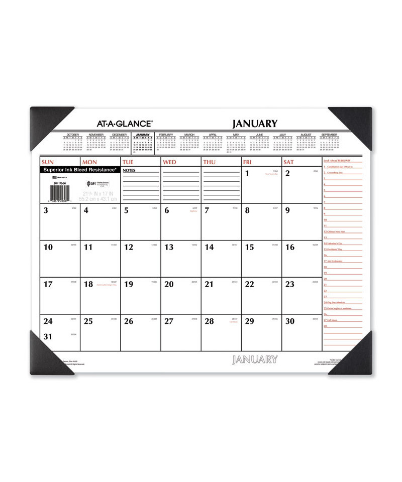 Use the next month planning space to plan ahead. Durable backboard provides a sturdy writing surface. One month per page with unruled blocks and lined notes space. Full-year calendar reference; federal holidays highlighted. Printed on high-quality paper with superior ink bleed resistance.