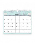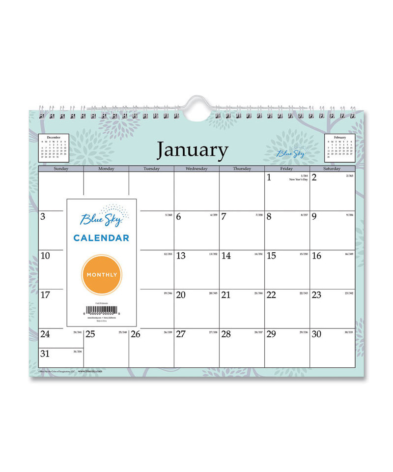 Use this slim wall calendar as a writing surface to jot down notes, ideas, appointments, reminders and more. Dated planning pages range 12 months from January to December. One page per month format includes daily blocks, Sunday through Saturday scheduling, count of days/days remaining, holidays and past and future months reference. Wirebound wall calendar is printed on thick, premium quality acid-free paper that reduces ink bleed-through. Twin-wire binding features a sturdy, wall mount hook for secure hanging. Printed with soy-based ink.