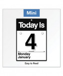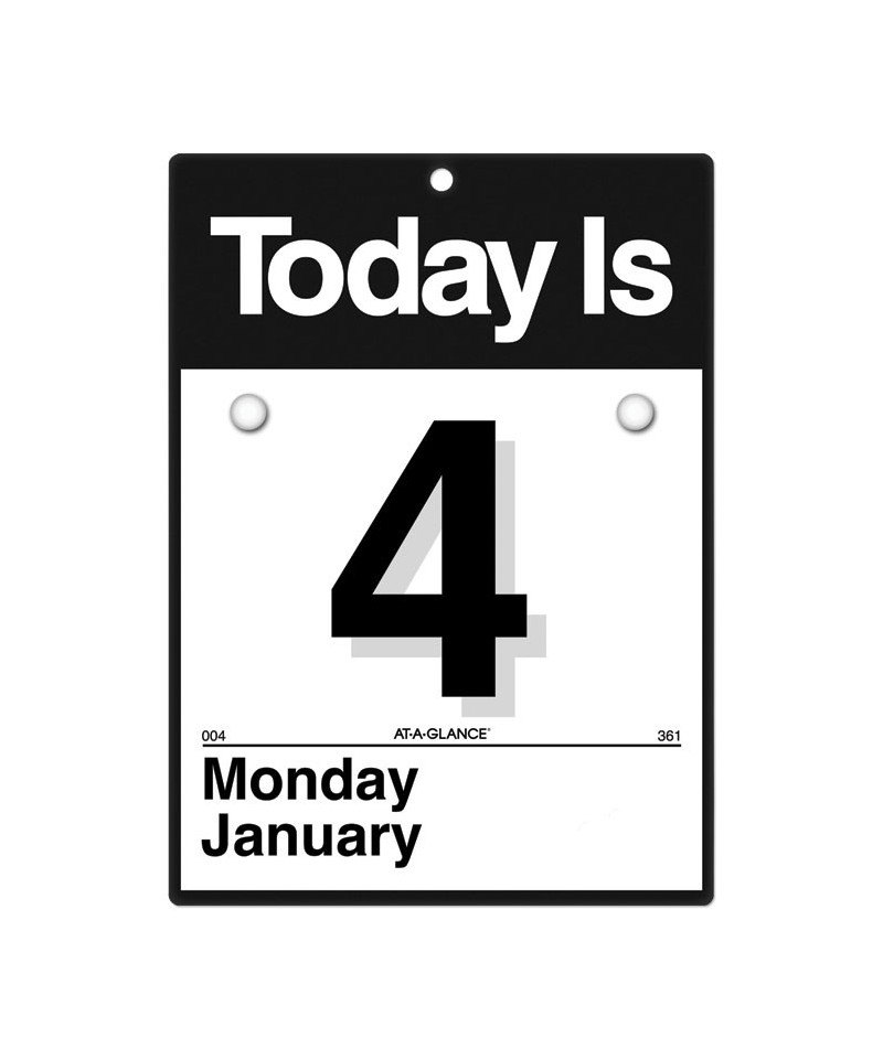 A calendar is a necessity in every workspace, and this dependable classic makes it easy to keep track of each day, one day at a time. Each sheet boldly displays either a single weekday or the weekend (with Saturday and Sunday combined). Extra-large black print on a bright white background delivers a high-contrast effect to help ensure just about anyone can check the date at a glance. Rigid, black vinyl backboard with eyelet simplifies hanging the calendar on cubical panels, room dividers, sheet-rock walls, plaster walls and more. Yearly refills available-use the handy backboard year after year.