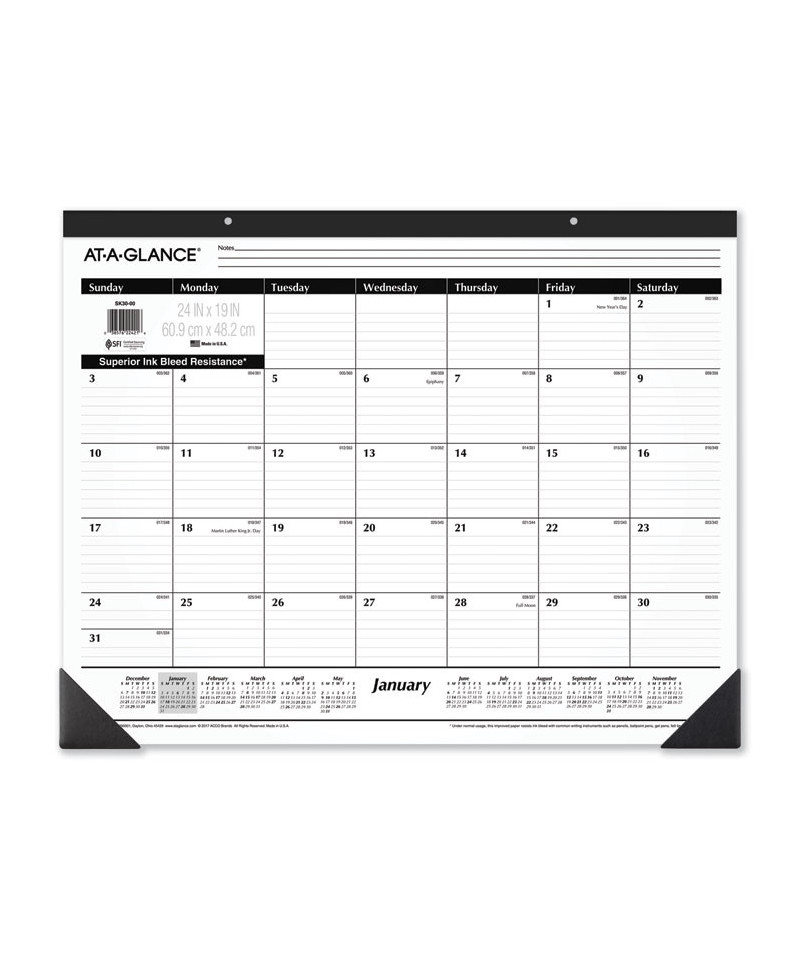 Ruled Desk Pad, 24 x 19, White Sheets, Black Binding, Black Corners, 12-Month (Jan to Dec): 2026