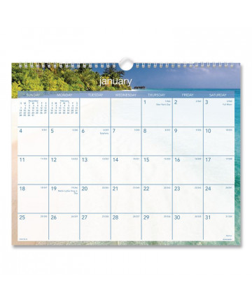 Great addition to any home or office desk to stay organized. Use calendar as a writing surface to jot down notes, ideas, appointments, reminders and more. Dated planning pages range 12 months from July to June. One page per month format includes Sunday through Saturday scheduling, holidays and past and future months reference. Wirebound wall calendar is printed on thick, premium quality, acid free pages that reduce ink bleed through. Twin wire binding features a sturdy, wall mount hook for secure hanging.