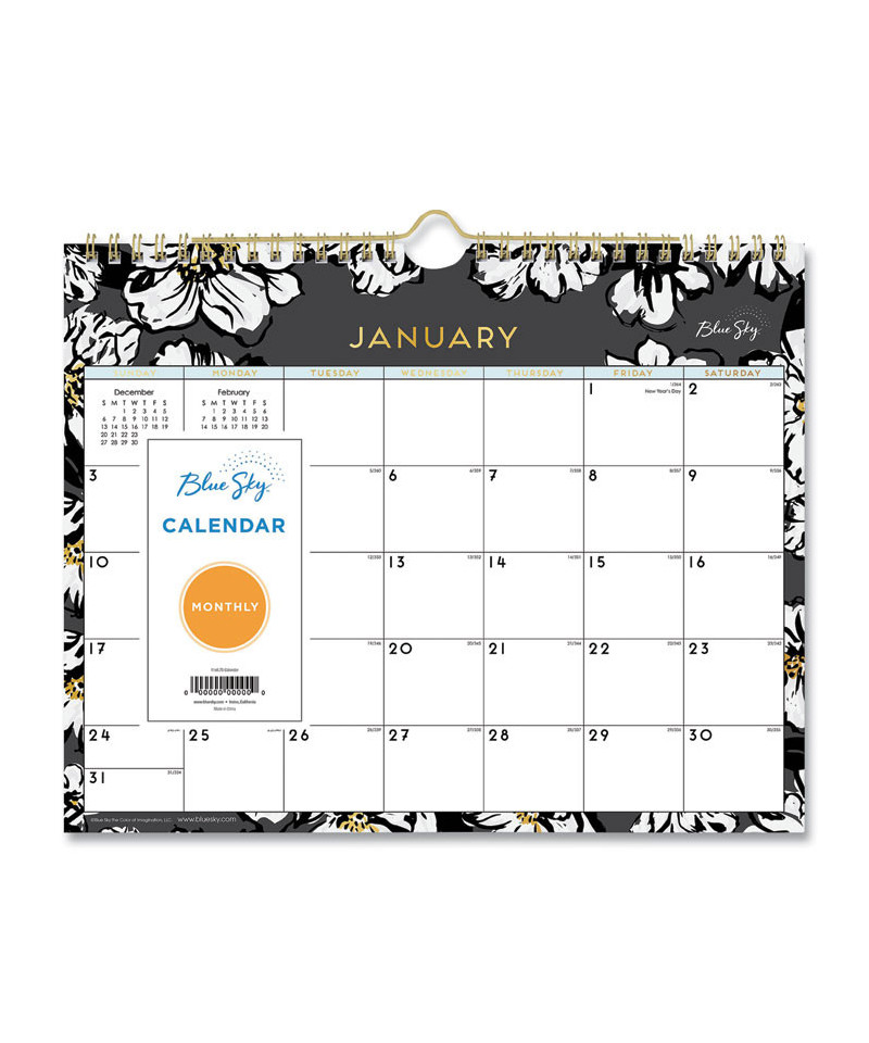 Use this wall calendar as a writing surface to jot down notes, ideas, appointments, reminders and more. Dated planning pages range 12 months from January to December. One page per month format includes Sunday through Saturday scheduling, count of days/days remaining, holidays, and past and future months reference. Wirebound wall calendar is printed on thick, premium quality, acid free pages that reduce ink bleed-through. Twin-wire binding features a sturdy, wall mount hook for secure hanging.
