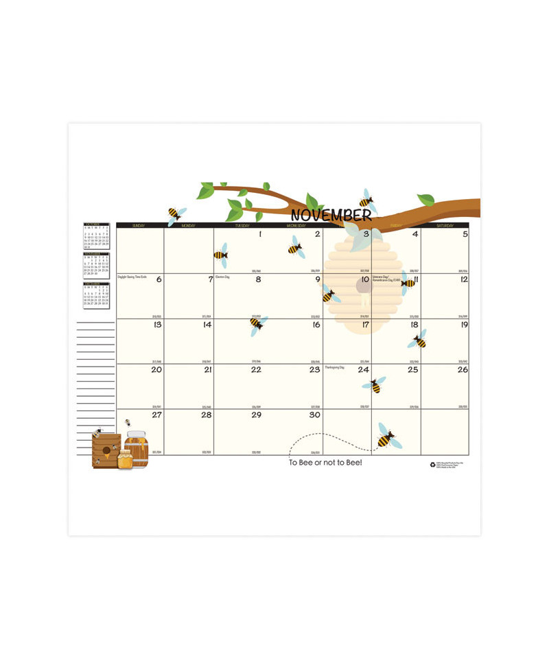House of Doolittle 100% Recycled Honeycomb Academic Monthly Planner, featuring August to July, has an adorable "Bee Happy" honeycomb design that rotates every six months, one month per two-page spread. This 7stitched flat planner fits well in any case or backpack. Includes space for important note information, Julian dates/days, previous, current and next month reference calendars with special bee phrases each month. The black leatherette stitched cover displays a honeycomb and bee pattern also. Additional information pages include important dates and holidays and a three-year at a glance calendar.