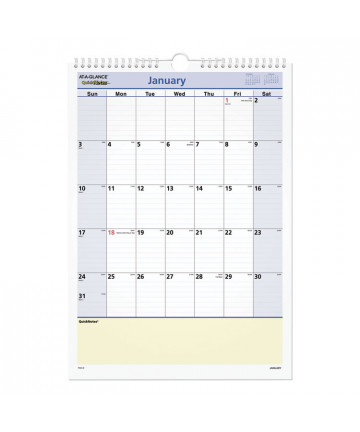 Stay organized with this helpful desk pad. It features a familiar one-month-per-page layout with a one-block-per-day format. A one-year reference calendar at the bottom of each page helps with long-term planning. The pads reinforced chipboard backer provides a solid, yet cushioned writing surface, and its perforated, top-bound sheets help ensure clean separation.