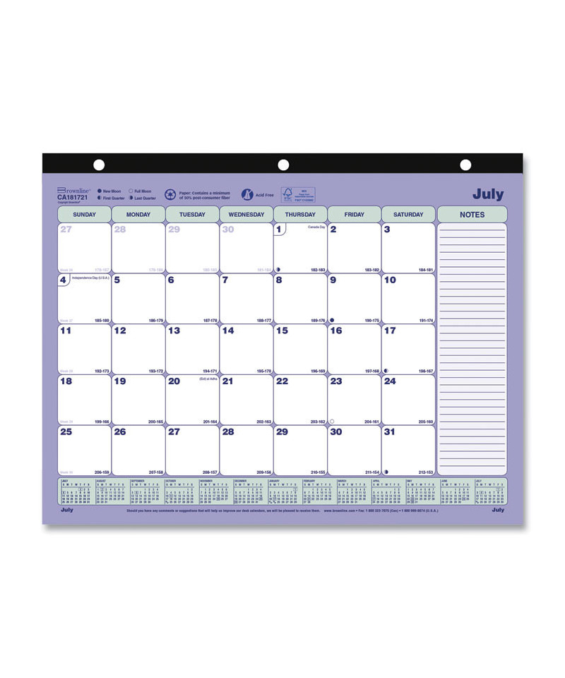 Note your important school events and get the flexibility to carry all your notes with you. Academic 13-Month Binder-Insertable Desk Pad Calendar features a one month per page, one block per day format with a ruled notes column on the right and a full-year reference calendar along the bottom, everything you need to keep your school year on track. And as it features a compact design with a three-hole-punched headband, you can use it as a desk-pad, a three-ring binder insert and as a wall calendar, whichever way suits you best, when it suits you best. A reinforced chipboard backer serves as a great writing surface; however you choose to use it, and each sheet is perforated to help ensure clean separation.