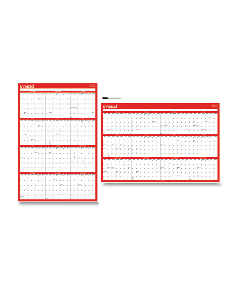 12 months in one view for a full year of monthly planning. Erasable write-on/wipe-off surface lets you easily change plans and is perfect for collaboration. This calendar is printed horizontally on one side and vertically on the other and is erasable, so you can change your schedule as often as needed. Large format allows you to see calendar easily from a distance. Wet-erase marker included.