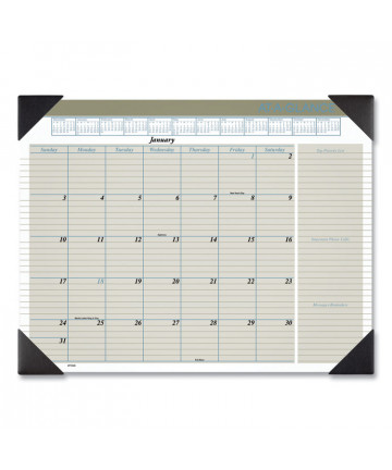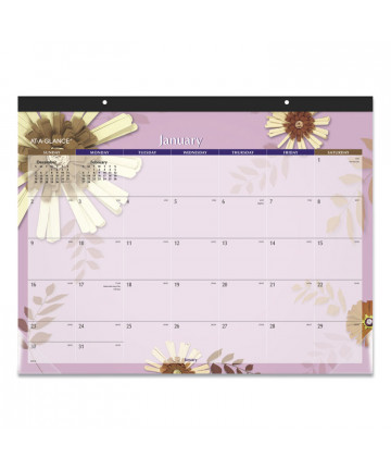 Simple. Sophisticated. Stylish. Embrace your inner fashionista, and keep your plans on track throughout the year with the WorkStyle Monthly Desk Pad Calendar. Never miss a moment. This calendar's monthly pages feature unruled daily blocks designed for detailed year-round planning, making it easy to see your big-picture plans in an instant. Create a lasting relationship with your calendar. The durable top binding helps the calendar stand up to wear and tear, and its pre-punched eyelets accommodate wall hanging. Keep your pages organized. Two poly corners help keep pages flat. Each page is also perforated for neat and easy removal.