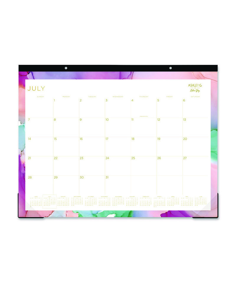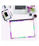 You'll stay organized and stylish with this functional deskpad calendar. There's plenty of room to record your appointments, deadlines, and personal obligations. The soft color palette will keep you refreshed and inspired. Easily reference the upcoming months with the 13-month calendar reference blocks along the bottom of each page. Major holidays are noted, and thick, premium quality pages reduce ink bleed-through. Easy-to-tear perforated pages make it simple to move on to the next month to stay on top of your busy schedule. The calendar is top-bound with cardboard backing and protective corner covers.