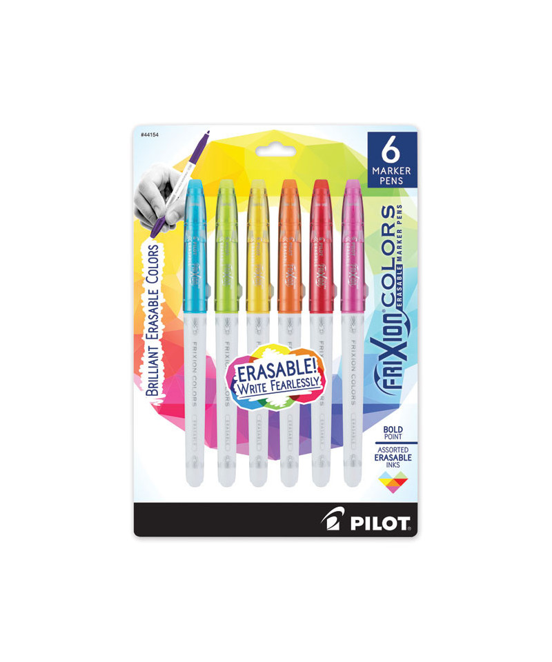 Add a touch of creativity and style to your everyday tasks with the new FriXion marker pens. Write smoothly, draw flawlessly, erase cleanly and revise repeatedly without damaging your documents, thanks to thermo-sensitive and erasable ink. The durable, bold point tip produces rich and vibrant lines. Quick drying ink won't bleed through paper.
