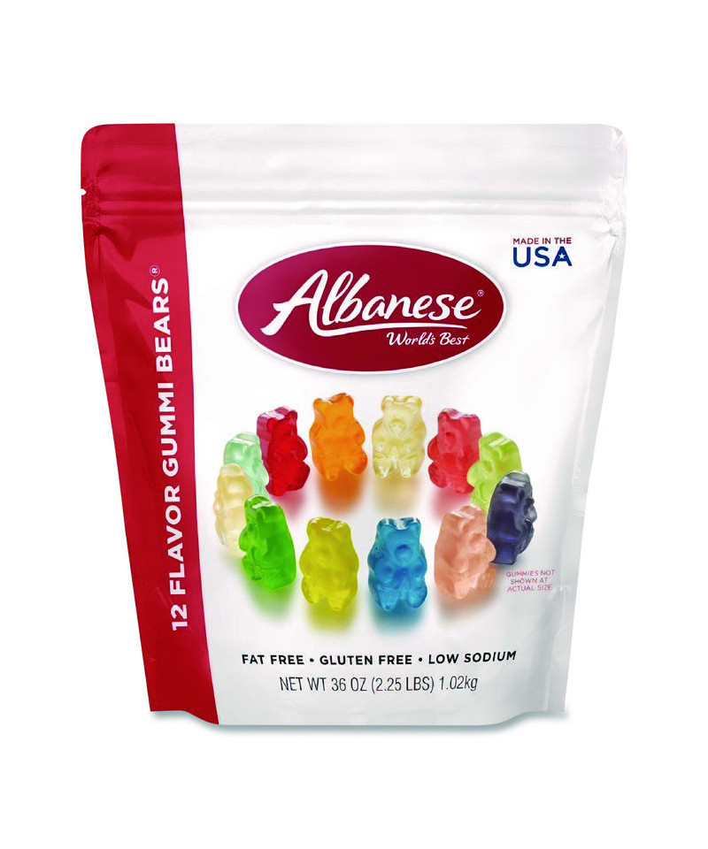 Grab a handful of this colorful mix of gourmet Gummi Bears and bite into the soft, chewy texture of these assorted flavored gummies. With 12 different flavors like Orange, Pineapple, Granny Smith Apple, Watermelon, Lemon, Cherry, Mango, Lime, Strawberry, Blue Raspberry, Grapefruit and Grape, every bag has more than enough flavors to excite everyone. Fill an office candy jar or bring some sweetness to your candy buffet with these gourmet Gummi Bears.