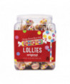 Enjoy your favorite candy, now on a stick, with Smarties Lollies. Each pop has the same tantalizing flavor as the rolled wafers, sweet yet tangy. With two great flavor options, enjoy these pops anytime you're in need of a sugar fix. With 120 individually wrapped candies in this 34 oz jar, this bulk container is perfect for leaving out on its own as a perfect complement to your candy buffet or for filling the pińata at your kid's next birthday party. Your guests will love the classic flavor of Smarties Lollies Lollipops.