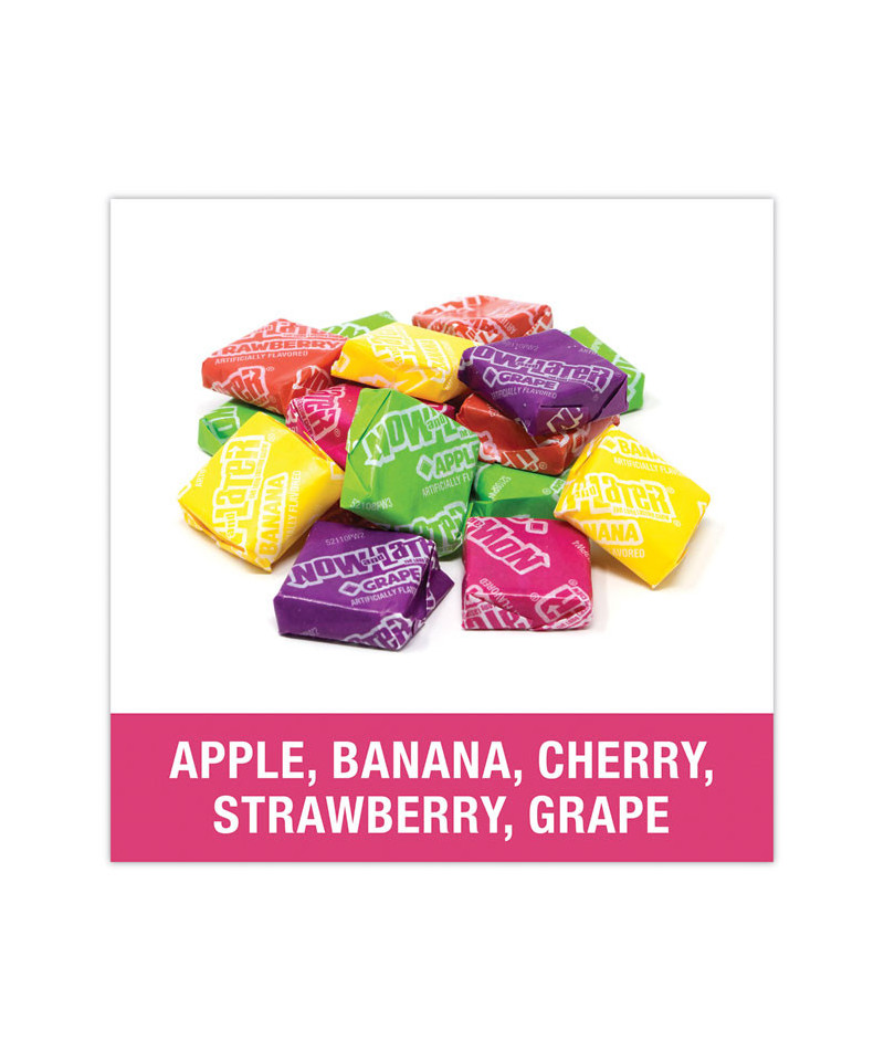 Now and Laters are the fruity, juicy taffy that have been an American favorite since 1962. Why are they so beloved? Each individually wrapped chewy candy is bursting with flavor that lasts! In this assorted bulk tub, choose from banana, apple, cherry, grape, and strawberry squares. With 365 individually wrapped Now and Laters, there is enough to fill the pińata at your kids birthday party or the colorful candy buffet at your celebration. Enjoy the long lasting chew of Now and Laters.