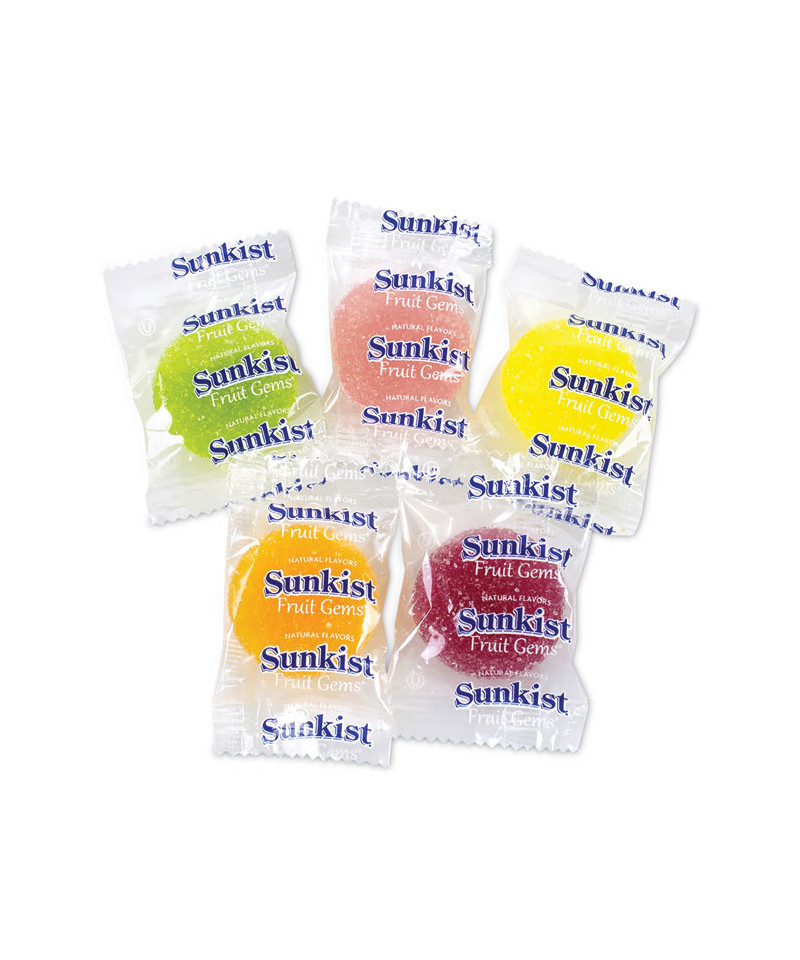 Fresh, flavorful and tender jells feature 100% real-fruit flavors and all-natural colors. Each bite is sprinkled with a dusting of granulated sugar, reminiscent of the French classic: pates de fruits. Five intensely refreshing fruit flavors—blueberry, lemon, orange, pink grapefruit and raspberry, delight the taste buds. Each gem tastes so fresh and juicy, you'll think you're biting into the real thing. Always made with quality and care. Individually wrapped. 100% vegan. Gluten- and gelatin-free.
