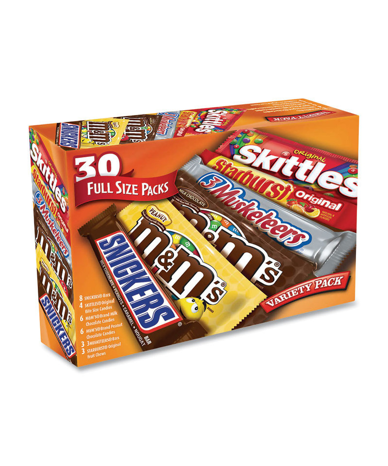 All of your favorite candy bars in one box. Full-size bars are great to share as an afternoon chocolate treat with friends. Assortment of the best MARS Candy Brands, this box will please friends, family and party guests. Great for movie theaters, gift baskets and stocking stuffers.