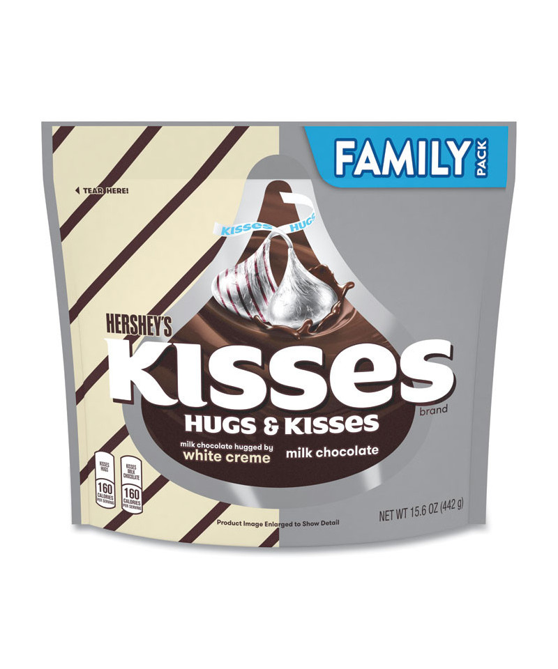 You'll love the delectable combination of milk chocolate hugged by white creme, paired with classic milk chocolates KISSES. These candies make great party favors and table displays, and delicious additions when baking your favorite cookies.