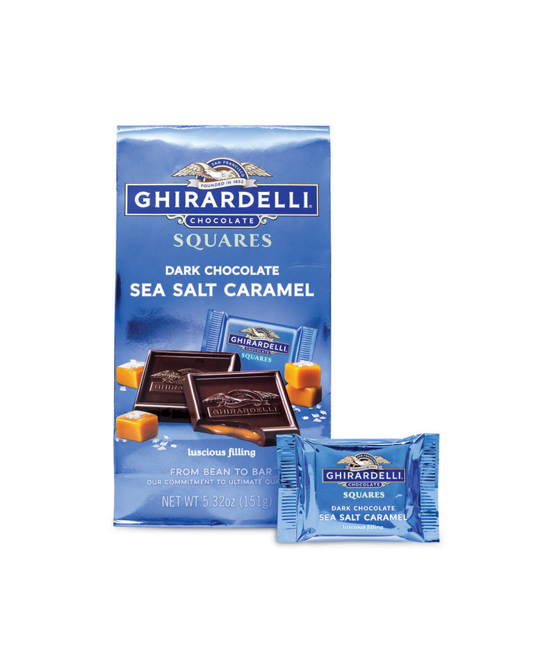 Why settle with just chocolate when you can indulge in rich dark chocolate enhanced with a sprinkle of savory sea salt covering a filling of buttery creamy caramel? Unwrap a Ghirardelli Chocolate Dark & Sea Salt Caramel Square and jump off the chocolate deep end. Plus, with three packs of individually wrapped chocolates, these are perfect for filling the office candy jars, or your candy dish at home.