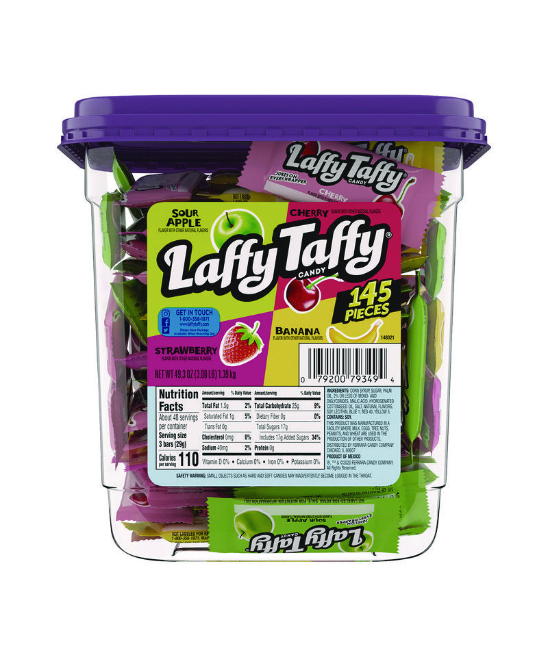 Lose your house keys and set the alarm off while trying to climb into your own window? Back your car out of the driveway and into your kid's bike and the neighbor's mailbox? Well, no matter what kind of bad day you're having, let a Laughy Taffy cheer you up. With this assortment of individually wrapped chewy candies in Sour Apple, Cherry, Banana, and Strawberry, there is a flavor to fix any disaster. For an extra chuckle, unfold the wrapper-there's a jolly joke written inside each Laffy Taffy.