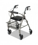 Sturdy rollator/walker with padded seat and straight, padded, backrest provides comfort whenever you need a break. Bicycle-style, loop-lock handbrakes for added control. Rollator folds for storage and transportation. Adjustable handle height for added user comfort; adjusts from 33.75" to 38" in 1" increments. Two-position wire storage basket provides an easy method for carrying purses, bags and any other supplies you might need. Convenient flip-up seat cushion provides easy access to storage basket.