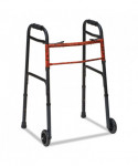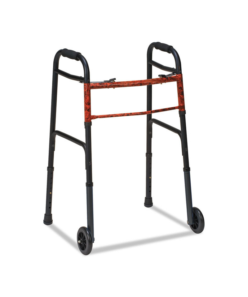 Two-Button Release Folding Walker with Wheels, Adjusts 32" to 38", 250 lb Capacity, Black/Copper