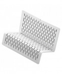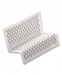 Strong, professional grade punched metal with decorative urban style slotted pattern. High quality satin finish complements any décor. Features protective feet to prevent surface wear and scratches on the desktop surface. Reinforced rounded edges provide durability and attractive detailing. Holds and stores up to 50 business cards for a professional presentation to your clients and customers.