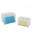 Don't sweat the small or big stuff with Super Stacker. This space-saving storage system will bring organizational order to any space. Its stackable design is perfect for use with or without shelving, with a heavy-duty plastic construction that can accommodate large or heavy items. Easy snap-lock handles to keep the lid in place and contents secure for transport, and fun color variations make it easy to categorize and distinguish contents.