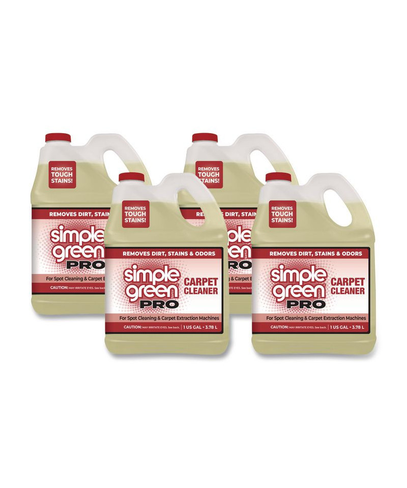 Simple Green PRO Carpet Cleaner removes dirt, oil, food spills, and stains from carpets, rugs, fabric, and upholstery. Will not damage carpet fibers or backings. Concentrated formula dilutes for great value. Cleans and deodorizes without harmful amines or bleach that can cause damage and discoloration. Use manually, or with pre-spray and extraction equipment. Strong enough to deep clean high-traffic areas, but gentle enough for everyday use.
