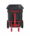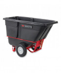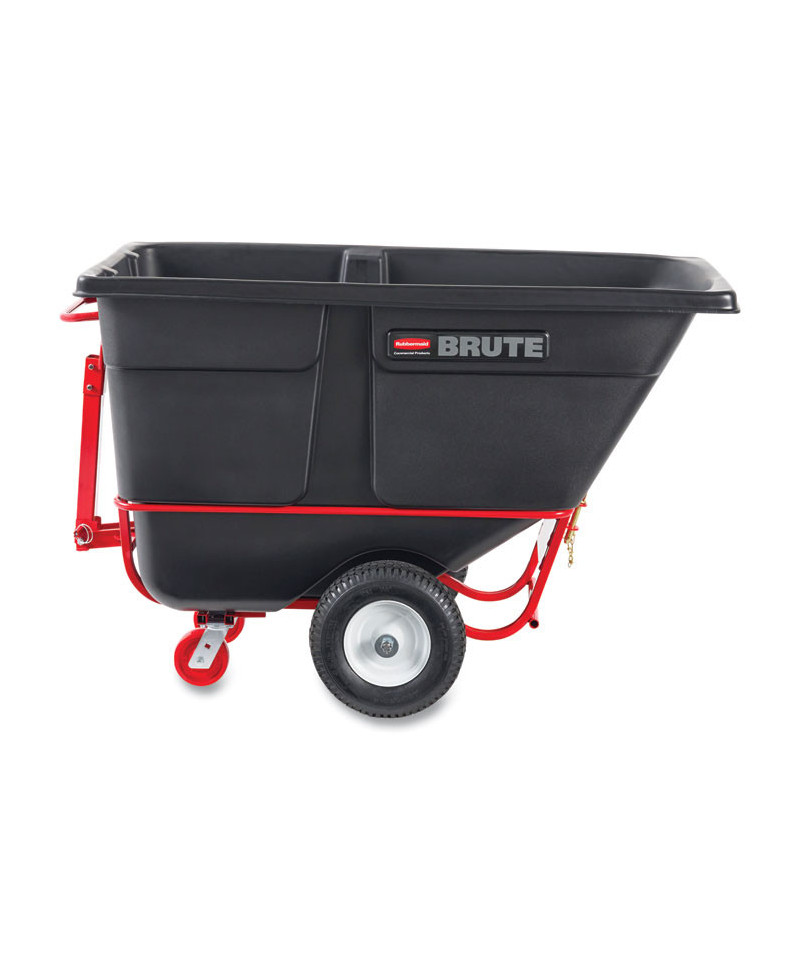 The Rubbermaid Commercial Towable Tilt Truck offers industrial strength construction to transport heavy loads up to 2,100 lbs with ease. Features a heavy-duty tow bar, hitch for multiple truck towing and training and can safely tow loads up to 5 mph. These tilt trucks are created with seamless one-piece rotomolded plastic bodies and reinforced lips. The sturdy, plastic construction won't rust, dent, chip or peel and is easy to clean. The 6" swivel non-marking casters and 16" pneumatic wheels provide smooth movement over rough terrain. The tilt truck features a powder-coated steel frame for corrosion resistance. Easy to maneuver through commercial doorways and onto elevators. A constant force design allows for controlled dumping by one person. Optional domed lids are available separately.