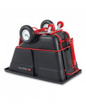 Tilt truck transports loads up to 2,100 lbs with ease. The 6" swivel non-marking casters and 16" pneumatic wheels provide smooth movement over rough terrain. Heavy-duty tow bar, hitch for multiple truck towing and training. Can be safely towed up to 5 mph. Constant force design allows for controlled dumping by one person. One-piece rotomolded plastic is easy-to-clean and resists pitting and corroding.