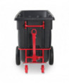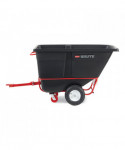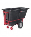 The Rubbermaid Commercial Towable Tilt Truck offers industrial strength construction to transport heavy loads up to 2,100 lbs with ease. Features a heavy-duty tow bar, hitch for multiple truck towing and training and can safely tow loads up to 5 mph. These tilt trucks are created with seamless one-piece rotomolded plastic bodies and reinforced lips. The sturdy, plastic construction won't rust, dent, chip or peel and is easy to clean. The 6" swivel non-marking casters and 16" pneumatic wheels provide smooth movement over rough terrain. The tilt truck features a powder-coated steel frame for corrosion resistance. Easy to maneuver through commercial doorways and onto elevators. A constant force design allows for controlled dumping by one person. Optional domed lids are available separately.