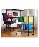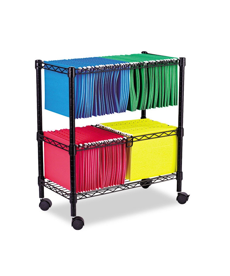 Mobile files help keep papers organized and handy when you need them and out of the way when you don't. Accommodates letter size hanging files. Versatile front to back or side to side filing. Four 2" hooded casters, two locking. The bottom shelf adjusts in 1" increments and is rated at 150 lbs. Assembles quickly and easily, without tools. Hanging file folders sold separately.