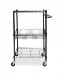 Ideal storage solution for industrial and commercial use. Snap-together design assembles in minutes. Strong welded wire construction provides exceptional strength and stability. Open design allows air circulation and reduces dust build-up. Finish on surface prevents corrosion in wet, humid environments. Safeguards for freezer, restaurant, food service, indoor/outdoor, or other wet/dry storage requirements. Rolls with ease on four casters (two locking).