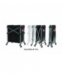 Collapsible carts are sturdy enough to transport items where they need to go. Strong, powder-coated stainless steel frame. Compact carts reduce by 75% when collapsed, minimizing storage space.