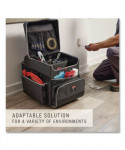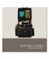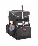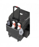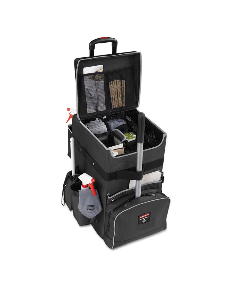 Repels water, oils and stains with Teflon® fabric protector coating to maintain aesthetics and protect against daily use. High performance material construction provides strength and rigidity to withstand rigorous daily use. Heavy-duty kick plate increases durability. Secure tools with handles using the heavy duty strap and large front pocket. Adjustable dividers help organize amenities and supplies. Aluminum telescoping handle is dependable for heavy daily use. Robust ball-bearing wheels are designed for reduced noise and heavy-duty use. Removable inner liner is treated with Teflon® fabric protector for easy cleaning. Ideal for housekeeping, lobbies, public restrooms, maintenance, and much more.