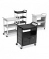 Won't rust, dent, chip or peel. Lightweight for easy maneuverability and quiet operation. No sharp edges to nick walls or furniture. Two-shelf cart with a sliding drawer beneath the top shelf and two locking doors beneath the bottom shelf. Interior cabinet area: 24w x 17d x 12h.