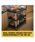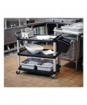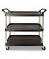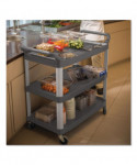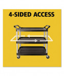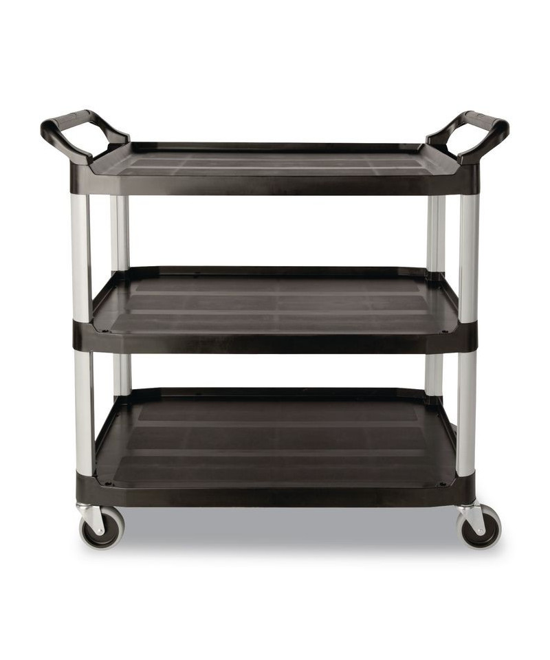 Sized to carry large loads and reduce return trips, Xtra™ Utility Carts are ideal for both front and back of house food-service applications, from kitchen food-prep tasks to table service. Metal uprights and durable, structural web body resist scratches, chips and rust. Fully open shelf design with easy-to-clean surfaces ensures easy loading and unloading. Lightweight and easy to maneuver with comfortable, easy-grip handles and quiet, nonmarking 4" swivel casters. Each shelf supports up to 100 lb.