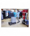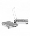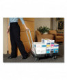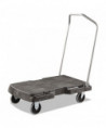 The Rubbermaid Commercial Triple Trolley efficiently transports large bulky loads and then folds flat for easy storage. The trolley has a sturdy structural foam deck that won't rust, dent, chip, or peel. The 3-position handle allows the user to push, pull, or fold flat for use as a dolly. Tough plastic construction is easy on walls and doors. The 5-inch casters are non-marking.
