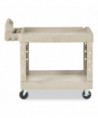 BRUTE Heavy-Duty Utility Cart with Lipped Shelves, Plastic, 2 Shelves, 500 lb Capacity, 25.9" x 45.2" x 32.2", Beige