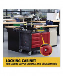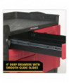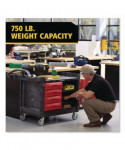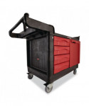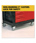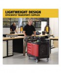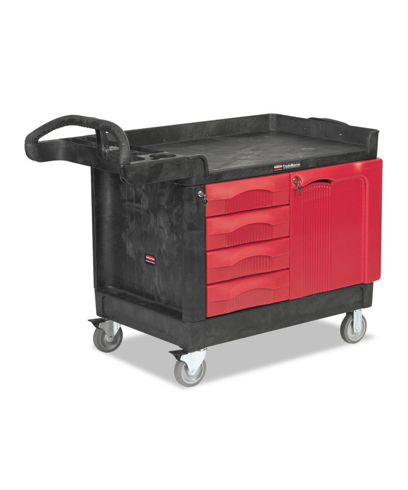 The Rubbermaid Commercial TradeMaster Utility Cart easily transport tools and supplies where you need them. The utility cart is made from a durable structural foam construction. The rolling utility cart is low maintenance, and rust, dent, and chip resistant. These utility carts feature a comfort grip, user-friendly handle and molded-in compartments for small parts or tools. The utility cart includes 5-inch non-marking casters, 2 fixed and 2 swivel with total lock brakes and full-extension, ball bearing drawer slides. Single key lock secures all drawers and allows one drawer to open at a time.