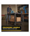 Handy, durable utility cart features rust-, dent-, chip- and peel-proof structural foam construction. Ergonomically designed push handle provides optimum hand placement and push height improving control and worker safety. Molded-in storage compartments, holsters, hooks and notches. Rounded corners and shelf walls won't damage furniture and walls. Variable grip-height handle improves control and worker safety. Built-in tool holster and molded-in fittings allow for easy addition of pipes or rods. 500 lb capacity.