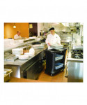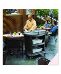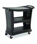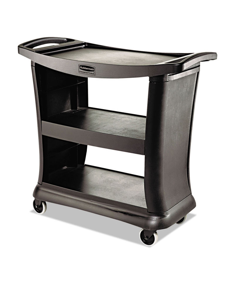 The cart brings the utmost in style, durability, and functionality to its users. This utility cart provides 20% more top-shelf capacity than previous Rubbermaid utility carts and accommodates two RCP bus boxes sold separately). The sleek, contemporary styling is ideal for front or back of house applications. The rolling utility cart has wrap-around end panels and solid base bumper. Smooth surface is easier to clean and maintain. This plastic utility cart offers simple assembly with a soft mallet; all-plastic construction with easy snap-and-lock assembly.