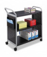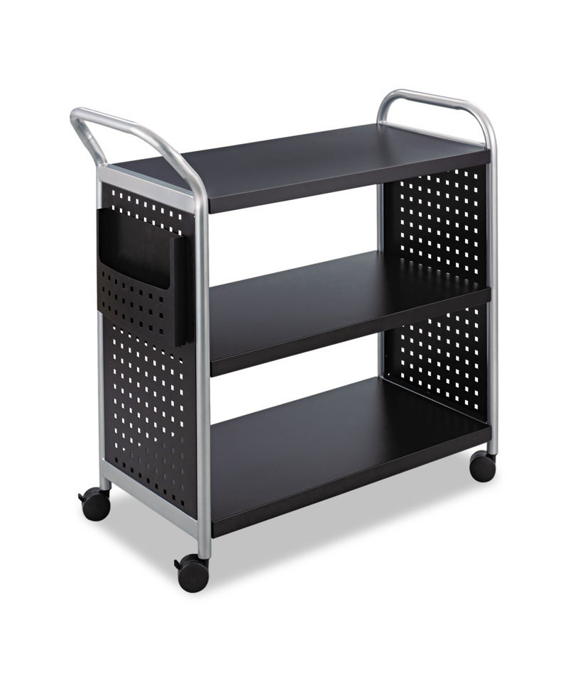 Safco's Scoot Utility Cart is a mobile office cart built with a pure steel construction and a powder coat finish for durability. This modern style all-purpose cart has a unique hole pattern design. The office cart features a side pocket for active files and an angled handle allowing for flexible movement in any direction. Mobile cart on 3" over-sized wheels holds up to 100 lbs per shelf.