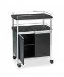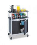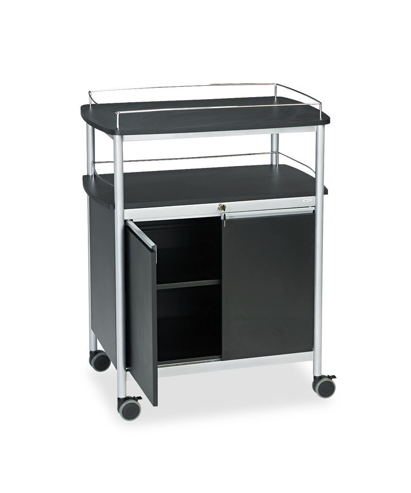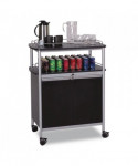 Enhance your breakroom, lobby, meeting space or conference room with this versatile and functional refreshment center, designed to keep supplies organized and easily accessible. The durable melamine top features 1.5" high wire rails, providing a secure surface that helps prevent accidental spills, making it ideal for coffee stations, snack areas or office essentials. Below, the locking cabinet offers a secure storage solution with a 29"w x 16.5"d adjustable steel shelf, allowing you to customize the space to fit your needs. Additionally, the 8.75" high open storage area provides quick access to frequently used items, ensuring everything is within reach. Built for effortless mobility, this unit glides smoothly on 3.5" casters, with two locking wheels to keep it stable when needed. Whether you need a stylish beverage station or convenient supply storage, this sleek and durable refreshment center is the perfect addition to any workspace. Upgrade your office with smart, space-saving storage today!