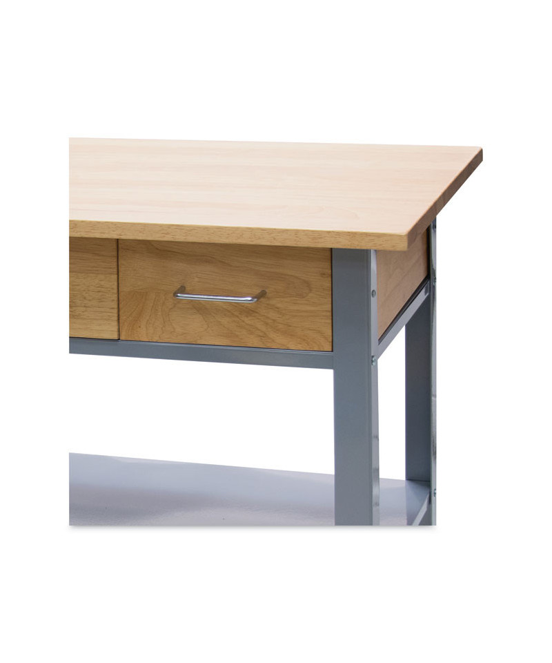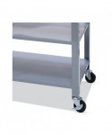 Perfect for the office, breakroom, or home. Three drawers provide additional storage space for tools or supplies. Two large metal shelves hold a variety of items. Durable steel frame with attractive silver powder coat finish. Rolls smoothly on four 3" industrial casters, two locking. Solid wood top and MDF drawers. Countertop surface measures 34 1/2" W x 19 3/4" D.