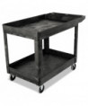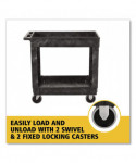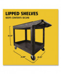 Heavy-Duty Utility Cart with Lipped Shelves, Plastic, 2 Shelves, 500 lb Capacity, 25.78" x 45.25" x 33.25", Black