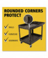 Lipped Shelves—Features two 4" non-marking non-swivel casters and two 4" non-marking swivel casters.