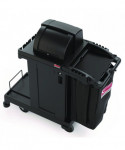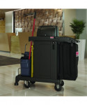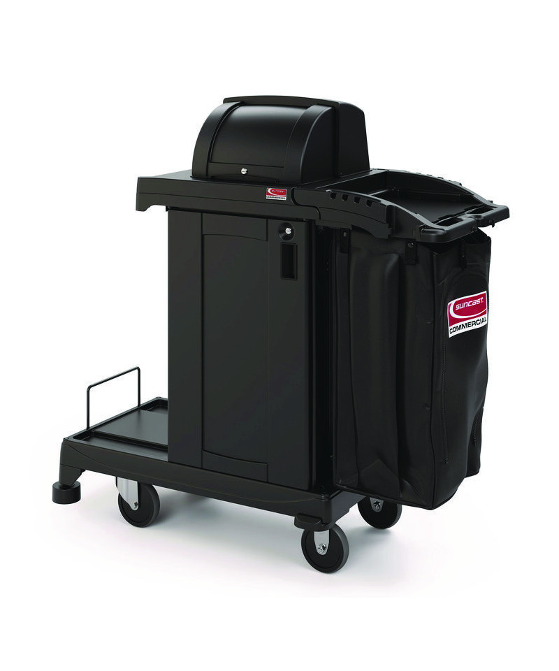 The Suncast Commercial high security cleaning cart is a very secure cart with a variety of storage and organization options. With a lockable hood and lockable front door, you can store your important items that may need to stay out of sight and secure, while getting your duties done. The one large bin and two small bins provide a additional storage that may need to be easily accessible. The included spacious standard bag can be used for collecting laundry or linens, and the added lid will keep these items out of sight. This is the perfect cart for all of your janitorial and housekeeping needs.