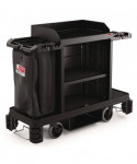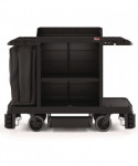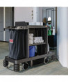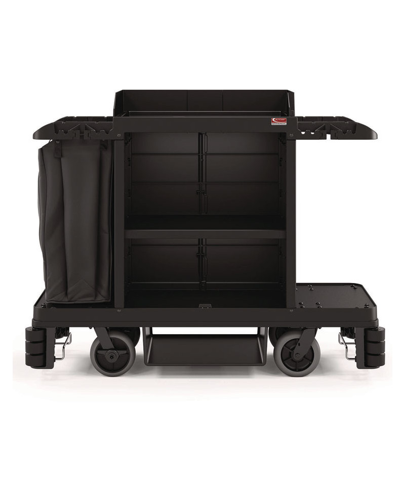 The Suncast Commercial premium housekeeping cart is our most innovative cart and durable cart. With the 360° adjustable caster system that allows for a fixed front caster mode, which keeps the housekeeping cart straight when desired, or full-range 360° movement, perfect for tight spaces, sharp corners, turn-arounds and side to side handling. The included spacious standard bag can be used for collecting laundry or linens, and the added lid will keep these items out of sight. This cart comes partially pre-assembled to save installation time. This is the perfect cart for all of your janitorial and housekeeping needs.