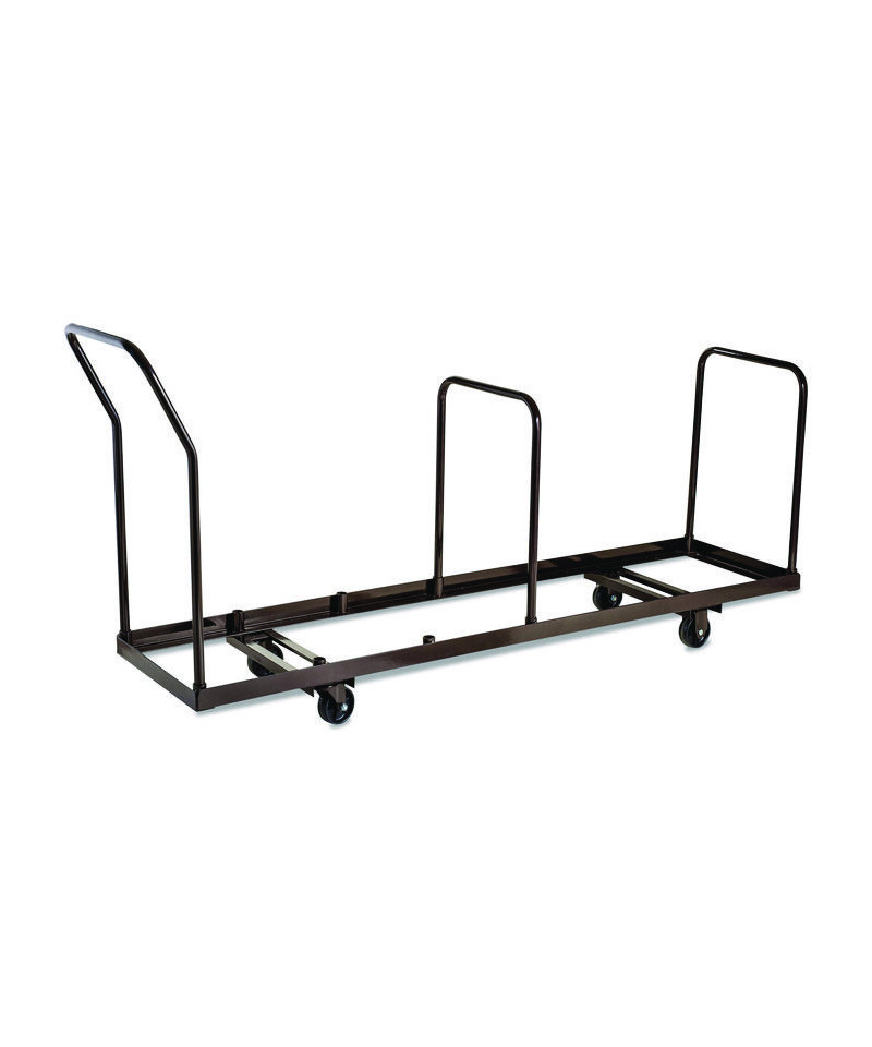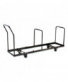 This NPS® Folding Chair Dolly stores and transports 35 NPS® folding chairs in the vertical upright position. Features three institutional-grade tubular handles and four rubber casters, two that swivel, to enable easy maneuvering of a fully-loaded dolly. Each heavy-duty caster boasts a 275 lb weight capacity. Solid steel construction has a powder-coated paint finish.